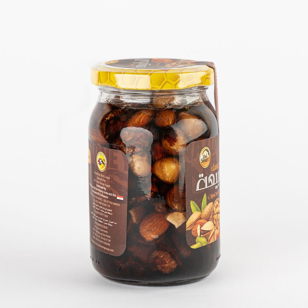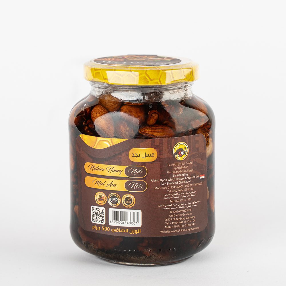Natural honey added to it (Cashews – hazelnuts – walnuts – almonds)